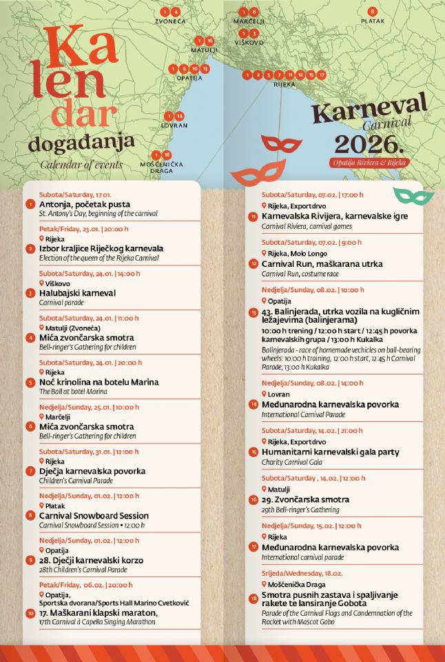 Preuzmi letak i istraži kalendar karnevalskih događanja na području Opatijske rivijere i Riječkog prstena: