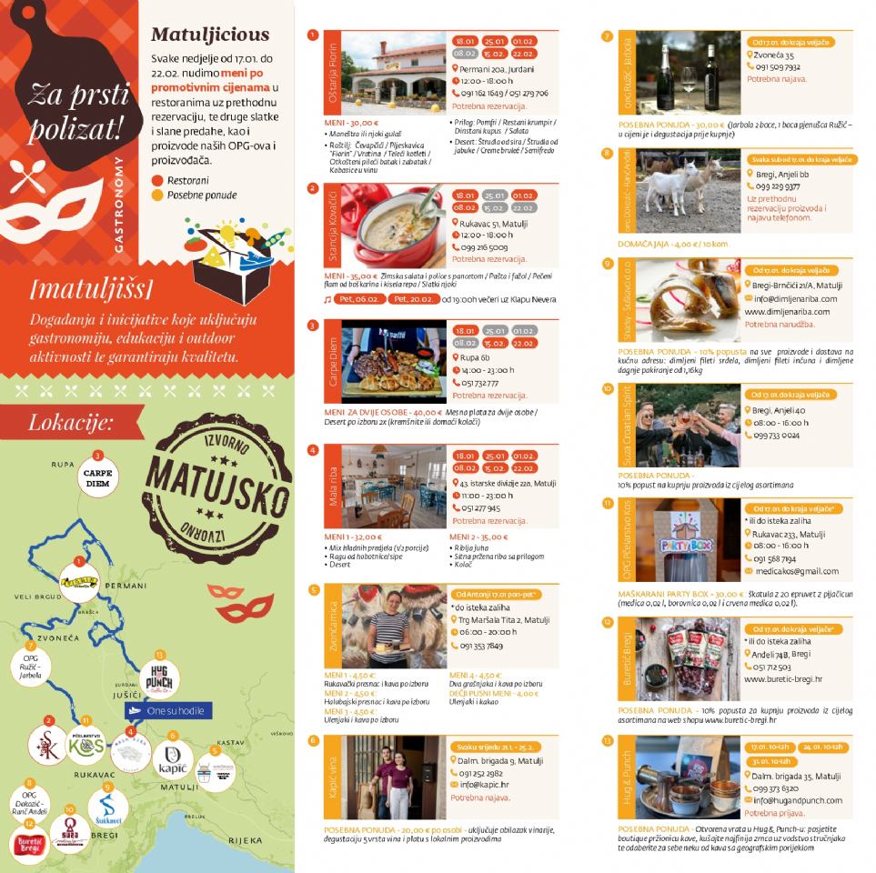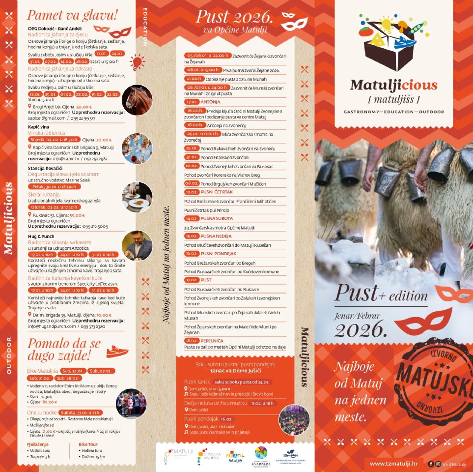 Poveznica za preuzimanje letka: https://www.tzmatulji.hr/upload/Matuljicious_letak_Pust_2026._-_digital.pdf